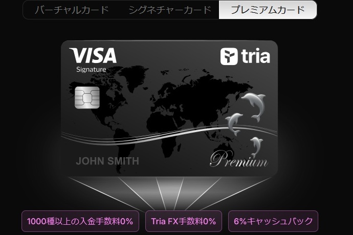 Triaは、暗号資産をチャージして使うデビットカード型の決済サービスです。 Visa加盟店(世界1億店以上)で利用でき、チャージした資産をその場で法定通貨に自動変換して支払う仕組みになっています。 取引所に戻して日本円に換金する手間がなく、ウォレット残高を“そのまま財布の中身”として使えるのが最大の特徴です。 カードは3種類あり、用途に応じて選べます:| カード名 | 発行費用 | 特徴・リワード |